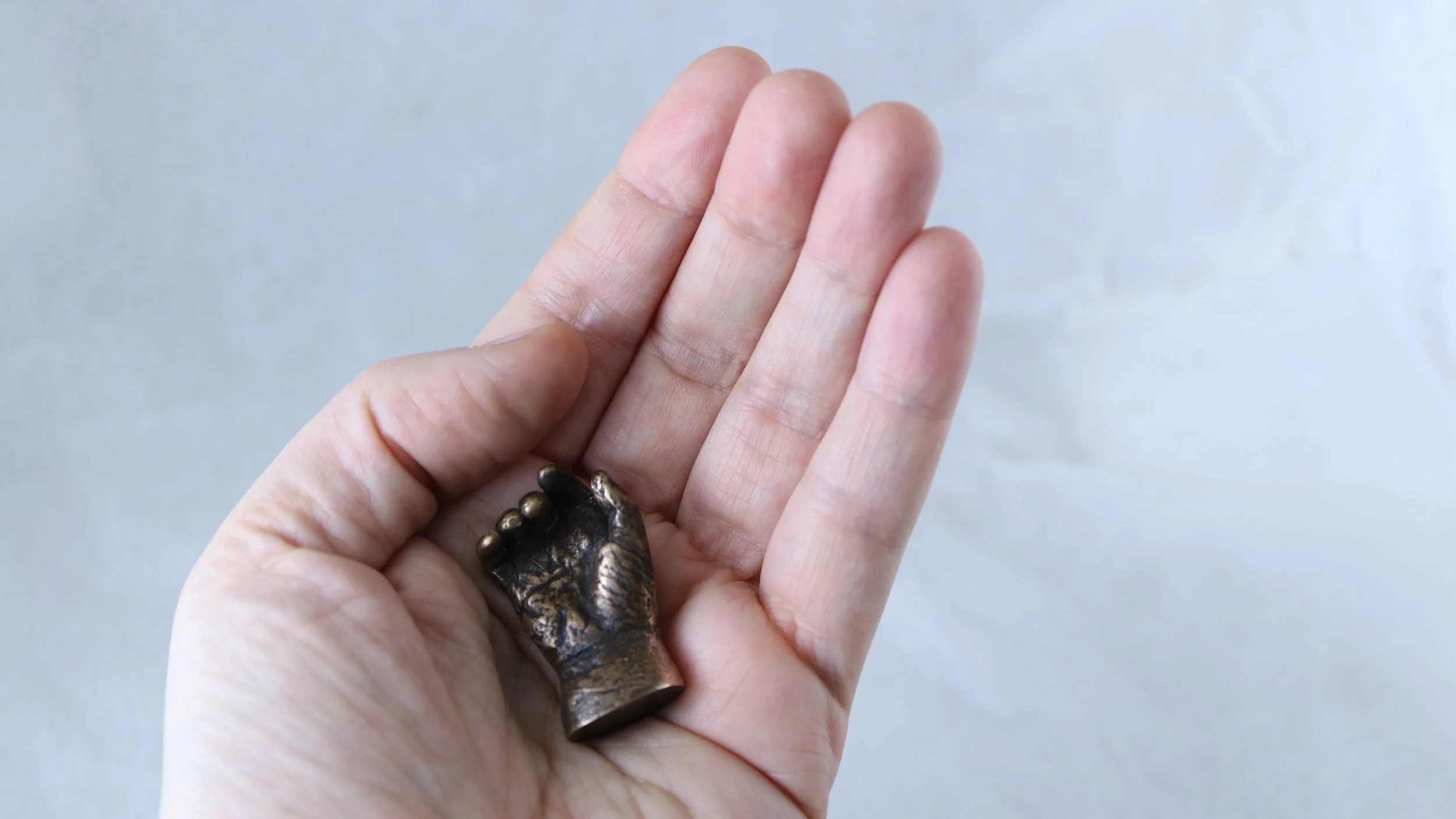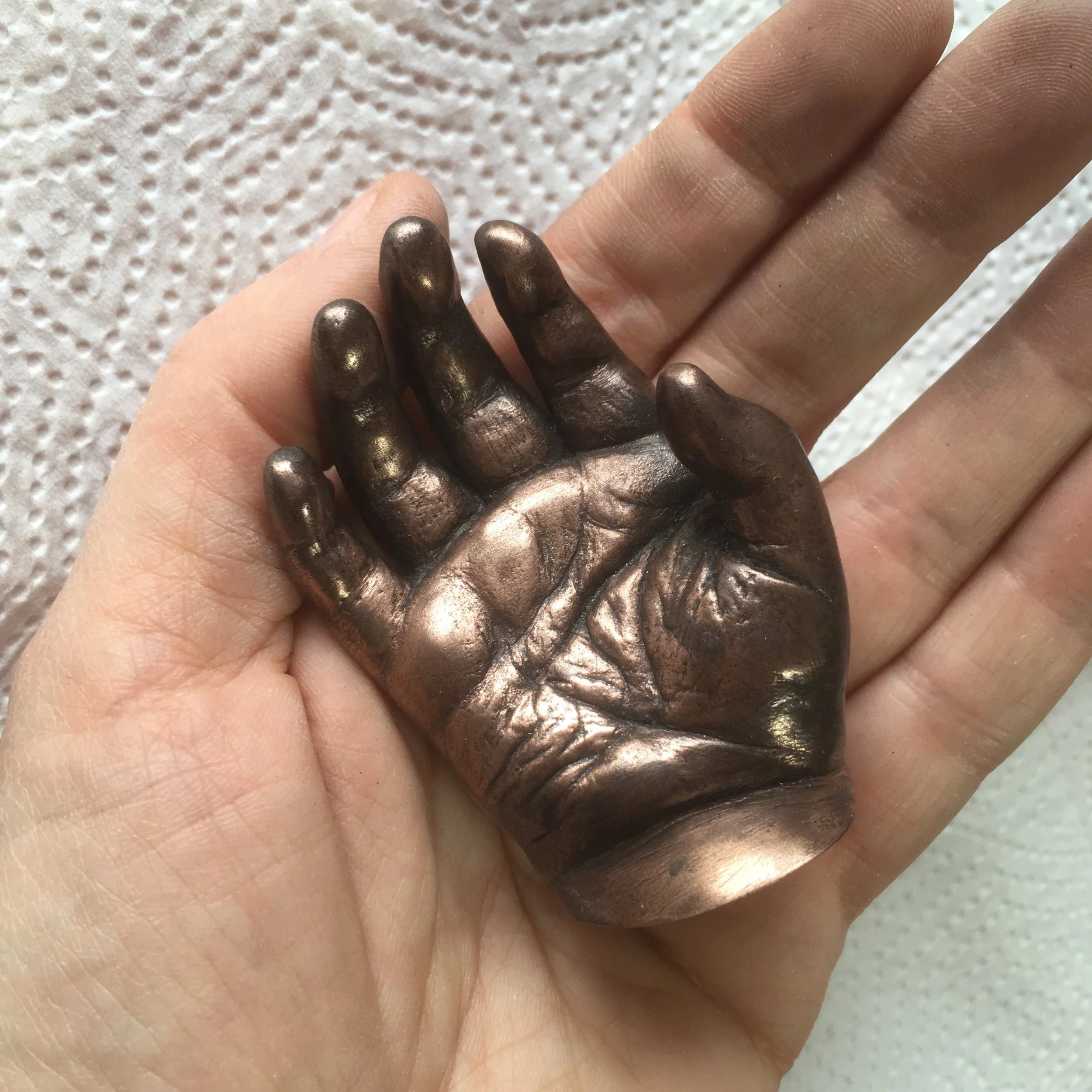 To this day I get comfort as I run my fingers over the inverted print of his palm and place my hand in his. For me these casts are a constant and beautiful reminder of him, like proof he was here and that he did indeed leave his mark on this world... And on us.”