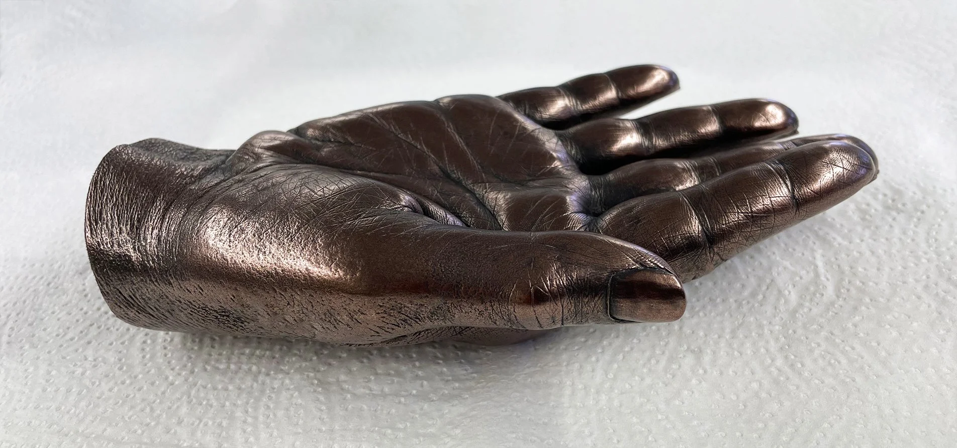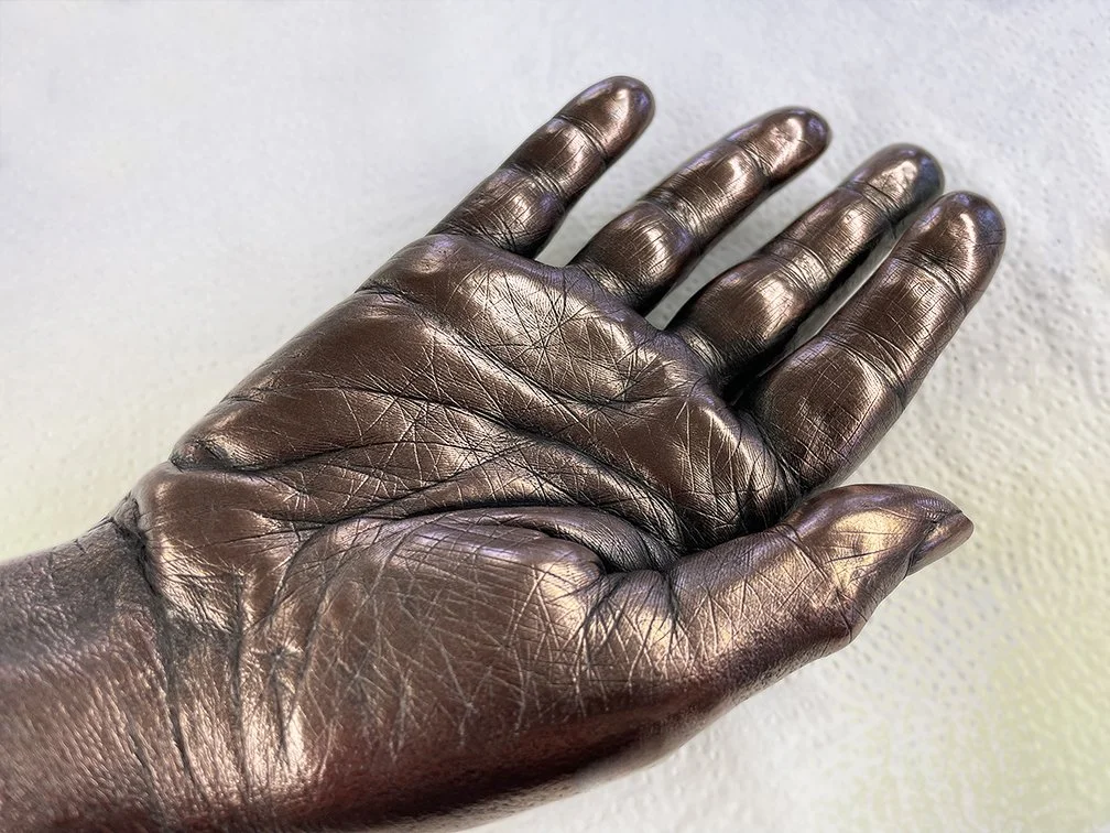 CJ and André handled both my brother and our family with the greatest of care and compassion, always mindful and respectful of our grief, we were kept informed during every step of the casting process. In regard to the casts themselves, the quality and detail are outstanding, I genuinely knew the moment I saw them that they belonged to my brother. I love them, they are a part of him. As abstract a concept as it seemed at the time, I have never regretted the decision to have them done and am truly grateful to both CJ and André for giving me something physical to hold on to. It is still not enough of course, nothing ever will be, but having them does help.